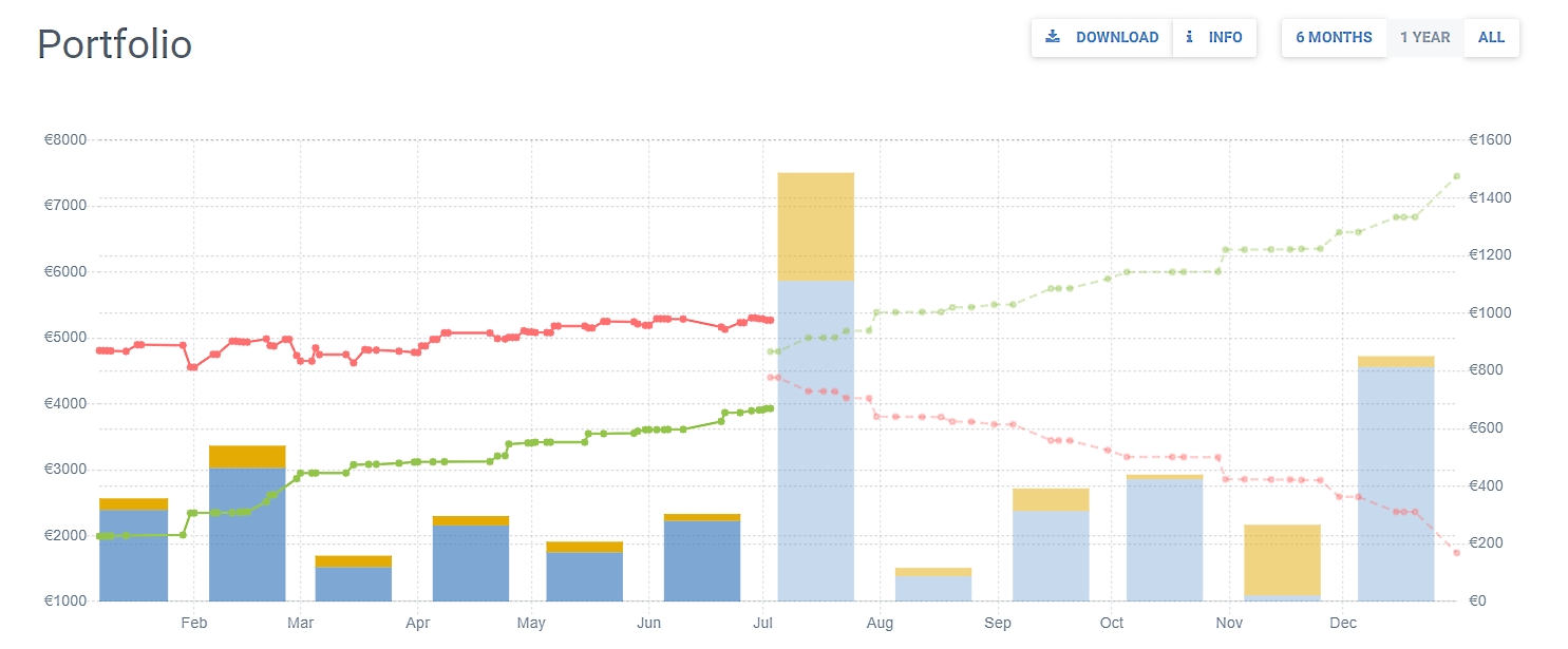 Income, that was difficult. Several CrowdEstate projects were supposed to pay out on the last day of the month and they did not. There has been no update on why they did not pay (on two projects they added a note that the payment schedule to be updated). So my income I less than expected in there and also due to that the portal now shows that in July my expected income from Crowd should be 375€, my best so far has been around 100€ mark. So if they keep that promise, I can live with the delays.